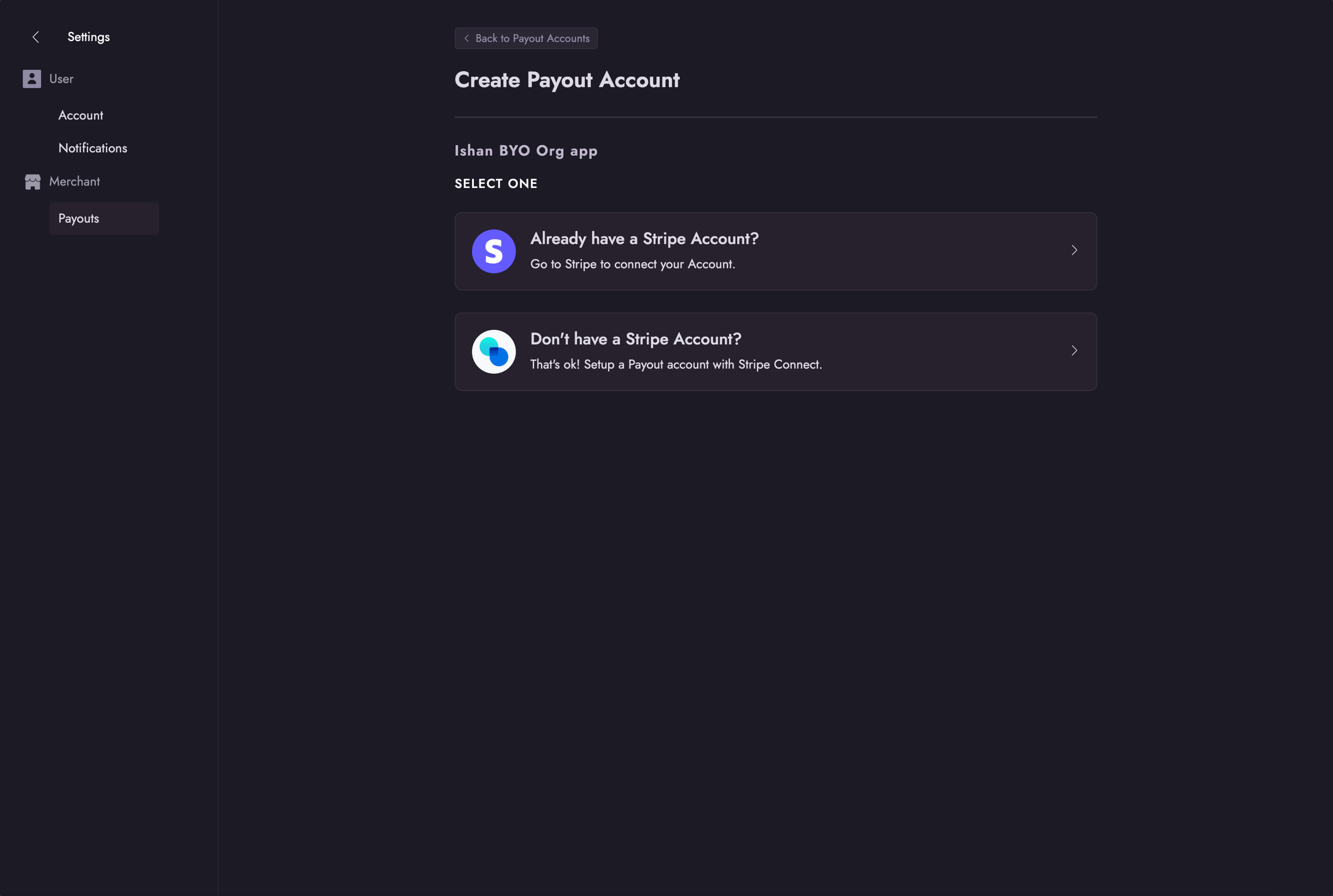Connecting a new Stripe Account for Payouts